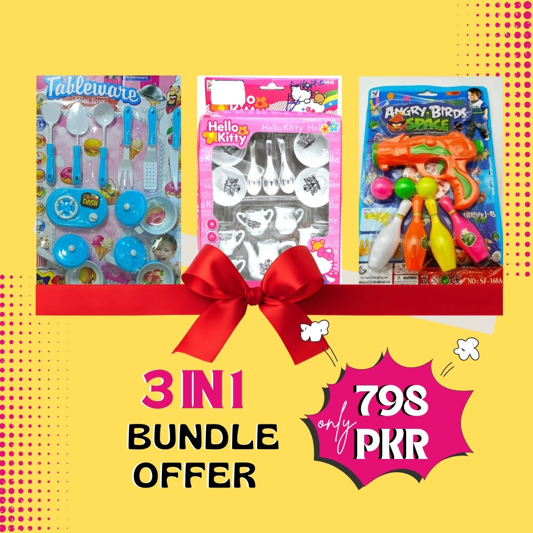 3 in 1 Bundle OFFER - Kitchen Set, Coffee Set, Ball Gun with Bottles for Kids